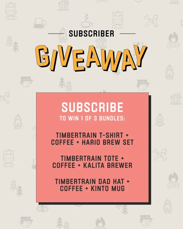 Prize 2: Hario V60 Coffee Maker Set, Timbertrain White Logo T-Shirt, a bag of Timbertrain Cosmic Candy